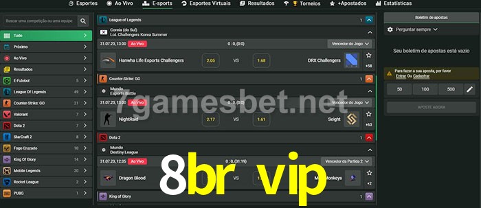 O 8br vip oferece uma grande seleção de opções de apostas em e-sports com probabilidades competitivas